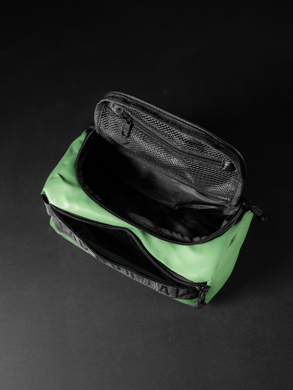 The Momentum Toiletry Case is made out of 600d polyester with a rubber coating.