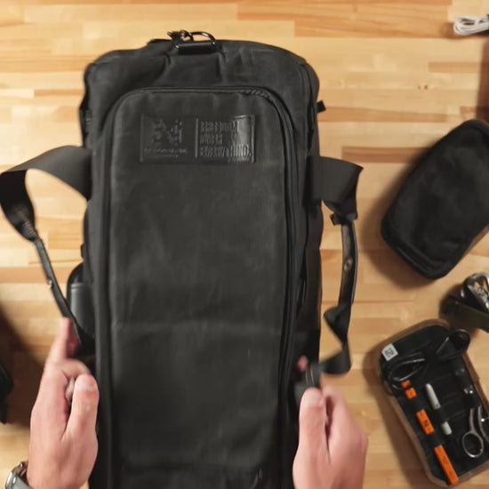 The modular design leaves you endless options when building out your pack. The exterior of these bags are constructed with a heavy duty waxed canvas that delivers a streamlined look but durability to keep moving.