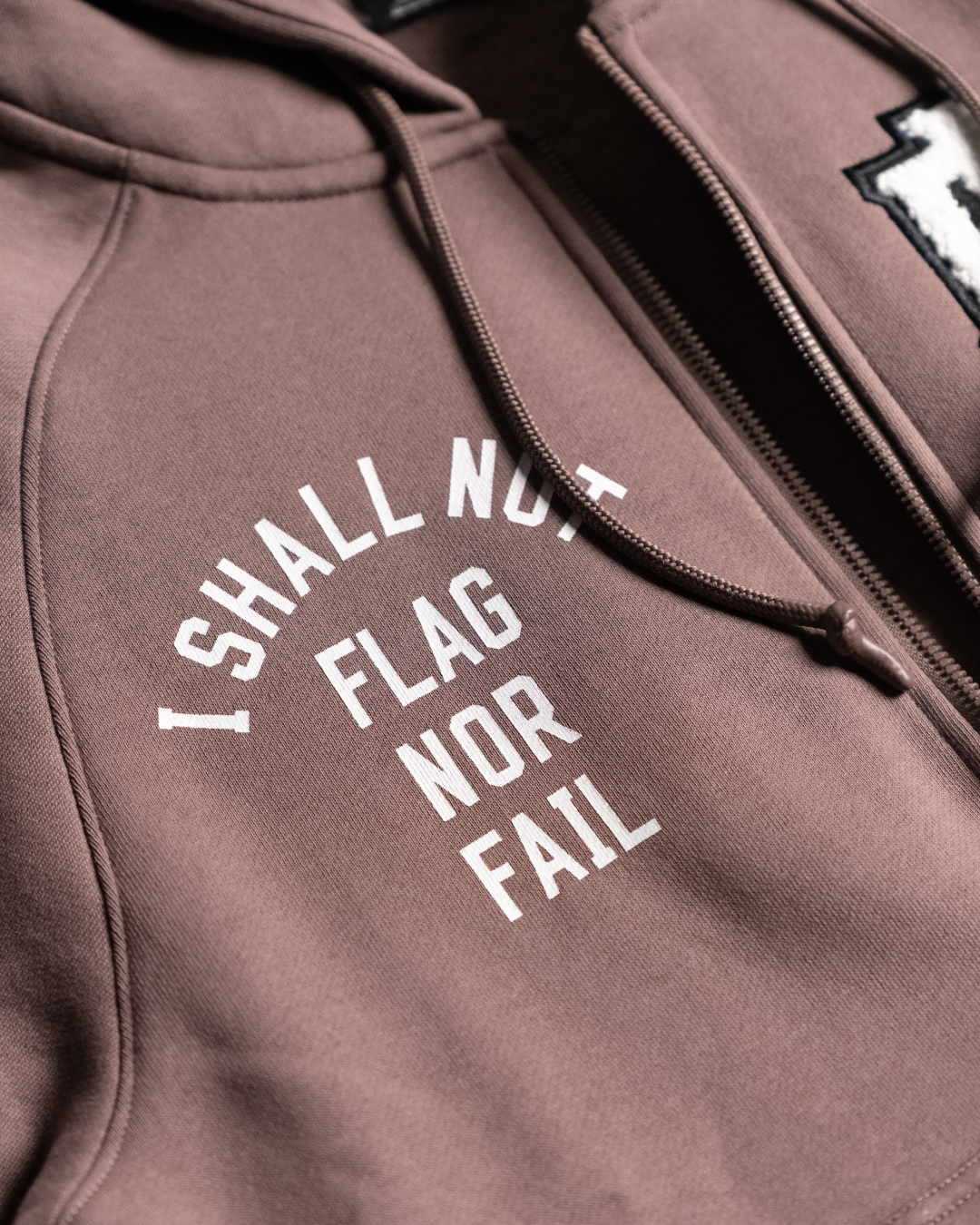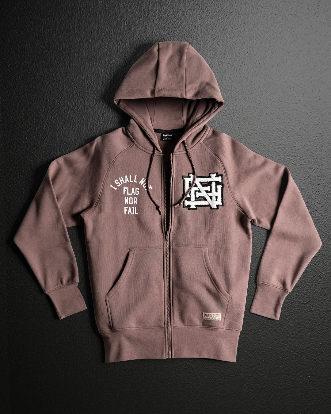 Featuring a 3.75” oversized embossed waistband with Flag Nor Fail text, the Varsity Zip-Ups deliver a secure fit and bold style. We’ve enhanced comfort while also making a statement, blending function and design for standout everyday wear.