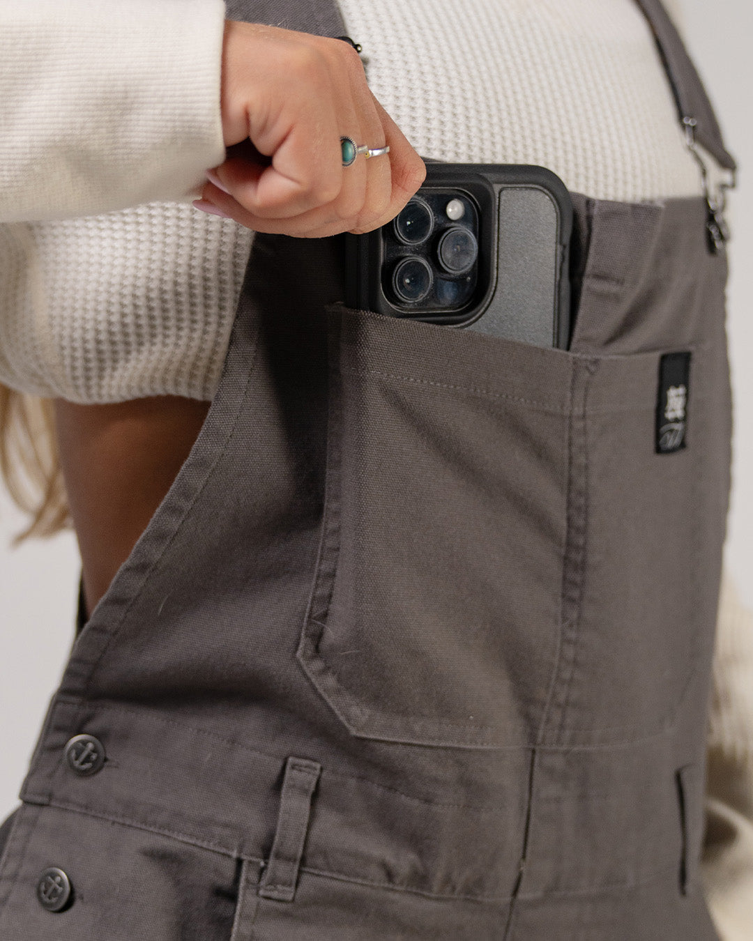 The lower half is not only packed with pockets but also with form. From the double stitched waistband and gusset, to the knee darting and additional fabric layering around the knee, these Overalls provide no restriction in the mobility department. These Overalls have also been designed to be cuff to fit whatever footwear needs you have for the day.